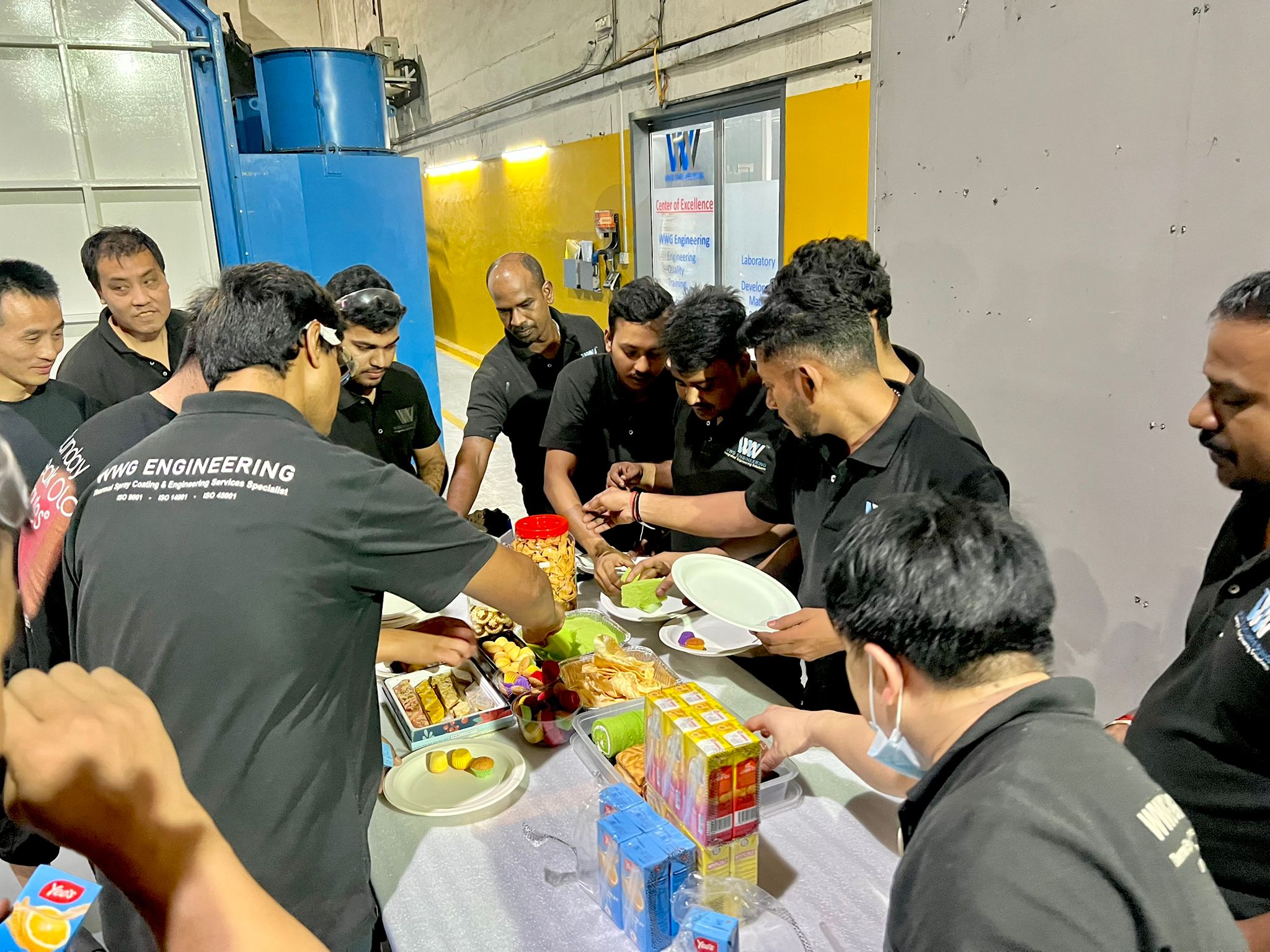 Special thanks to our very hardworking Indian Staffs, returning to work today. A small party celebration here, for your best memory.